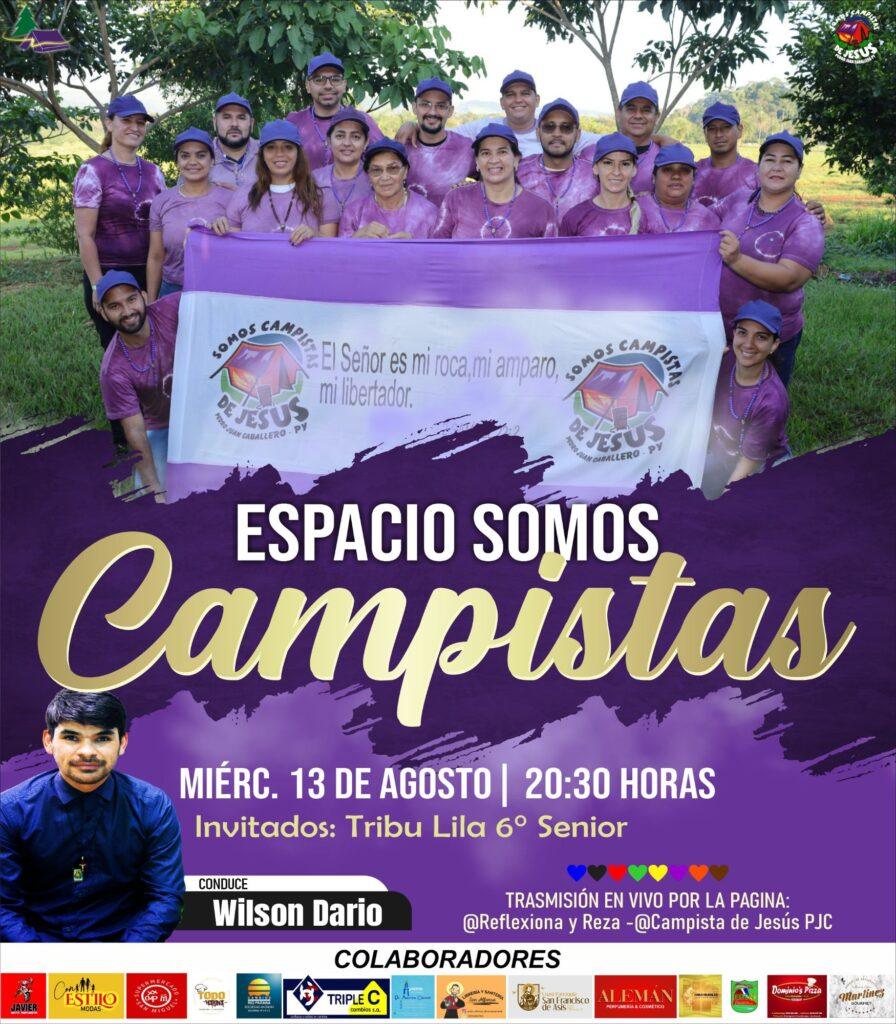 Esta noche, a las 20:30 horas, el evento «Espacio Somos Campistas de Jesús» tendrá como invitados especiales a Tribu Lila 6º Senior, en una transmisión en vivo que promete inspirar y reflexionar. La conducción estará a cargo de Wilson Dario, quien guiará la programación