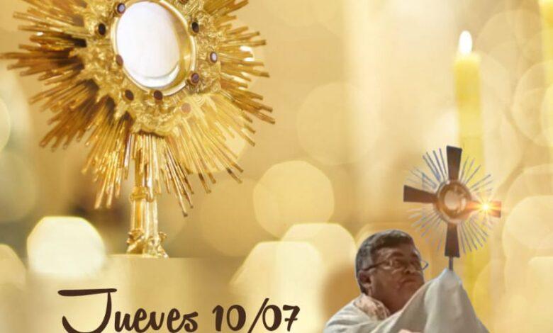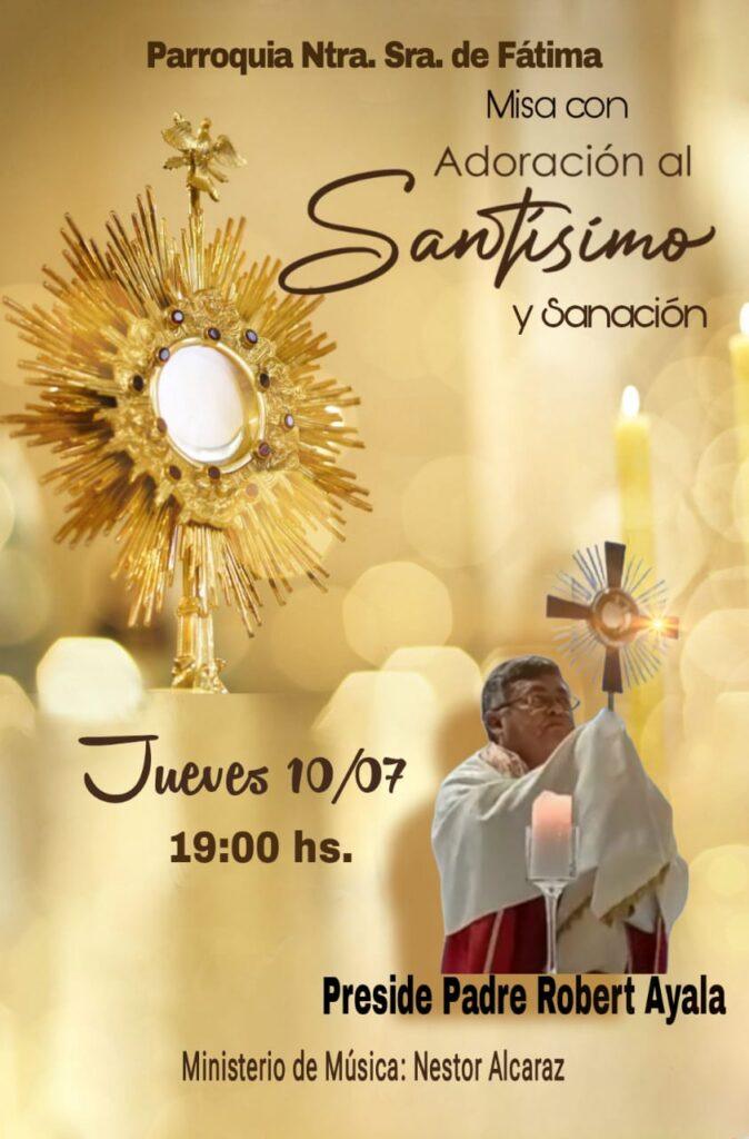 La Parroquia Nuestra Sra. de Fátima invita a la Santa Misa con Adoración al Santísimo el Jueves 10 de julio a las 19:00 h preside el Pbro. Robert Ayala. Ministerio de Música: Néstor Alcaraz.