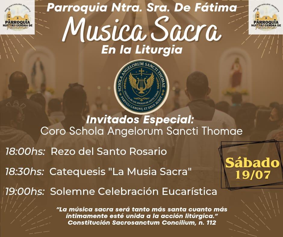 La Parroquia Nuestra Señora de Fátima extiende una cordial invitación a toda la comunidad a participar de una jornada especial de fe y belleza litúrgica. Este sábado 19 de julio, los fieles están invitados a vivir una tarde dedicada a la oración y a la formación espiritual, con un espacio centrado en la Catequesis sobre la Música Sacra.