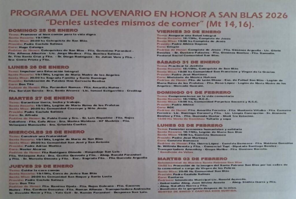 PROGRAMA DEL NOVENARIO EN HONOR A SAN BLAS 2026