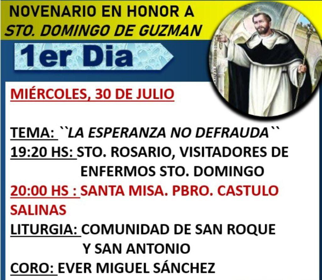 Este miércoles 30 de julio dará inicio el Novenario en honor a Santo Domingo de Guzmán, patrono que inspira a los fieles a vivir con alegría y profundidad su fe cristiana. Bajo el lema «La esperanza no defrauda», la comunidad parroquial se prepara para nueve días de oración, encuentro y renovación espiritual.