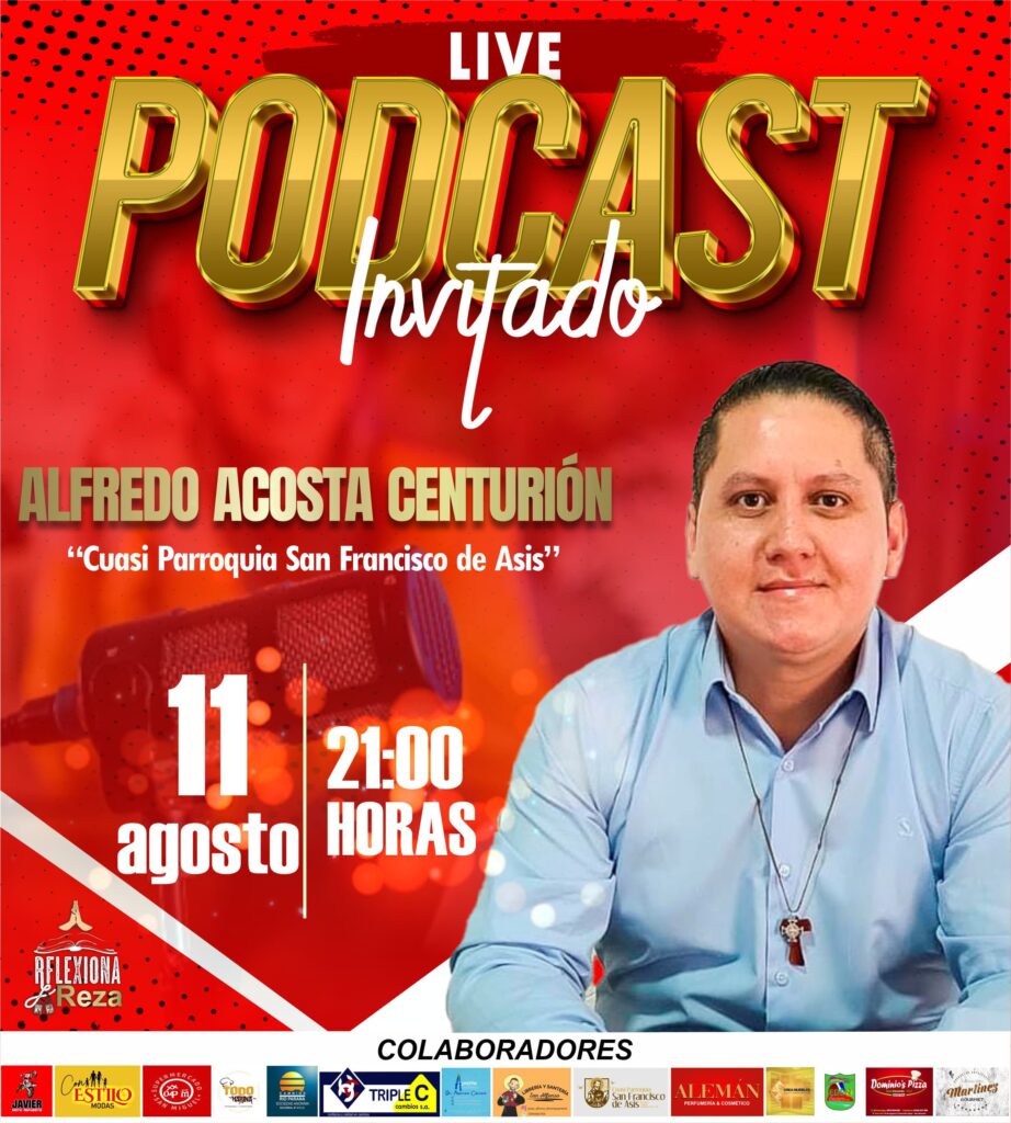 En el marco de su espacio Reflexiona y Reza, esta noche se llevará a cabo un nuevo Podcast en vivo con la participación especial de Alfredo Acosta Centurión, de la Cuasi Parroquia San Francisco de Asís.