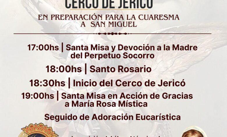 La jornada de fe comenzará a las 17:00 horas con la Santa Misa y la devoción a la Madre del Perpetuo Socorro. A las 18:00 se rezará el Santo Rosario, seguido a las 18:30 del inicio formal del Cerco de Jericó.