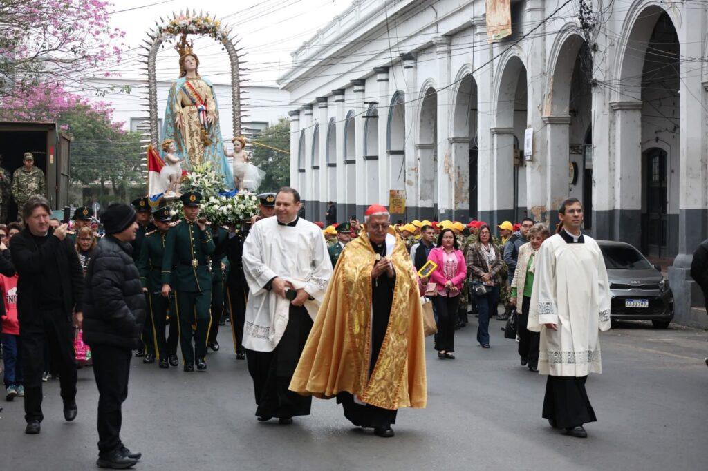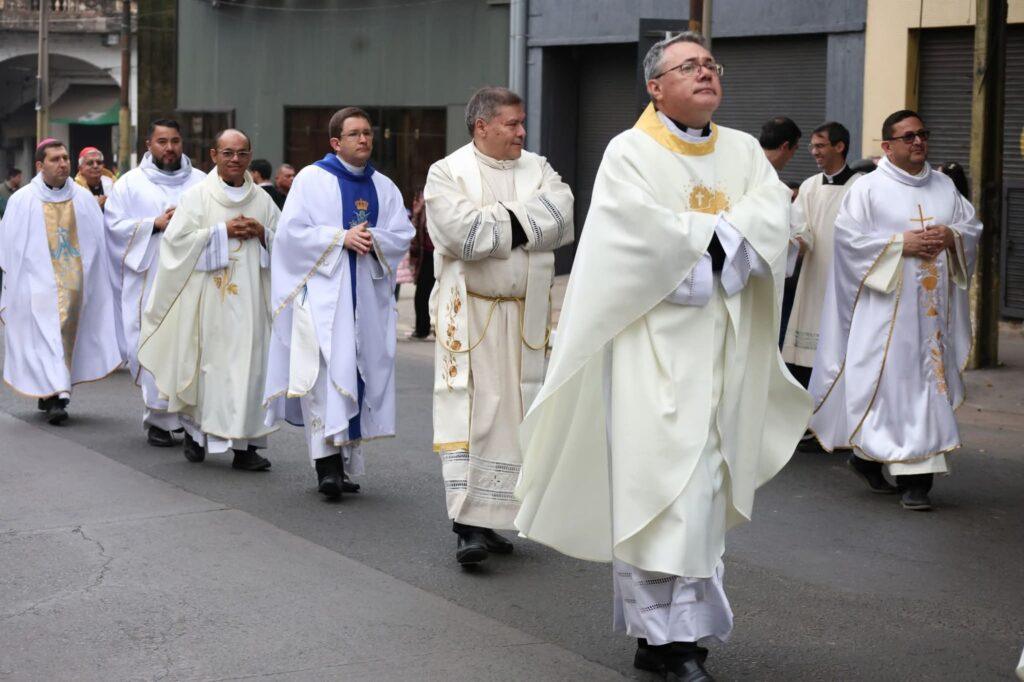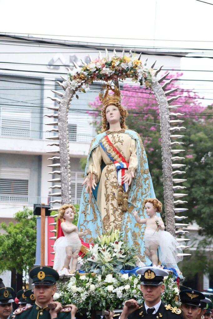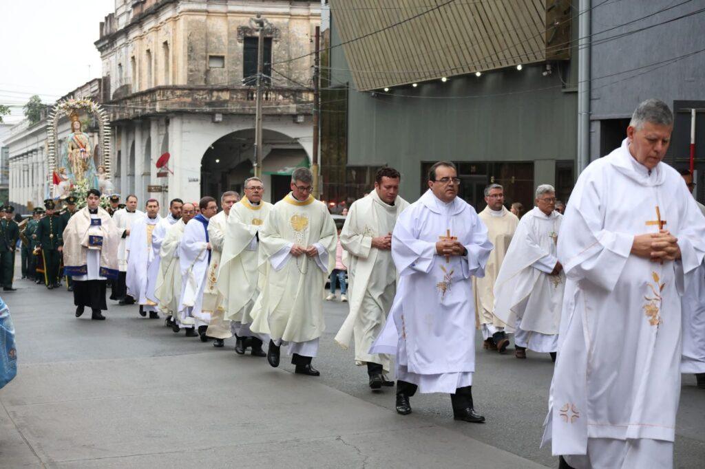 Al término de la celebración, la venerada imagen regresó a su oratorio y la Virgen de la Asunción Peregrina inició su recorrido hacia el Seminario Metropolitano, acompañada por una multitud de fieles, entre ellos amazonas y jinetes del Paraguay.