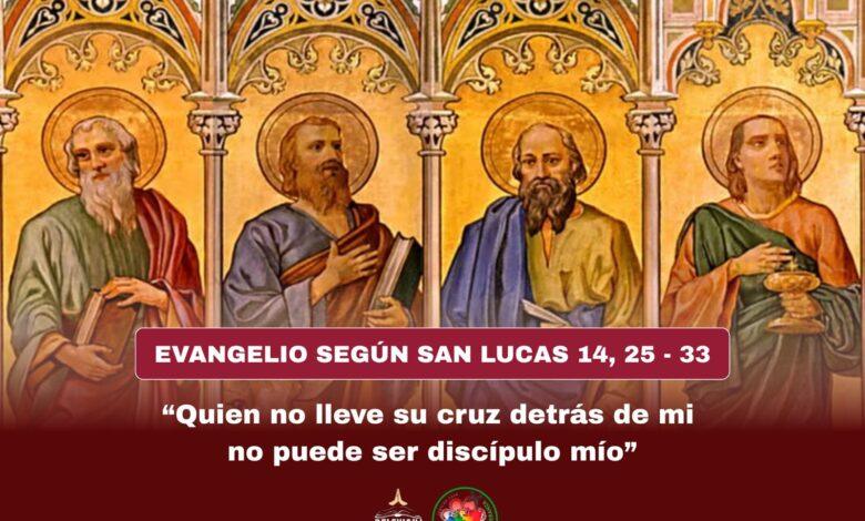 «Si alguno viene a mí y no pospone a su padre y a su madre, a su mujer y a sus hijos, a sus hermanos y a sus hermanas, e incluso a sí mismo, no puede ser discípulo mío. Quien no carga con su cruz y viene en pos de mí, no puede ser discípulo mío.
