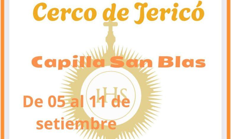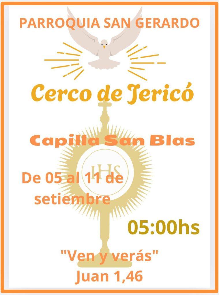 La Comunidad San Blas perteneciente a la Parroquia San Gerardo invita a toda la comunidad a participar del Cerco de Jericó, una semana intensa de oración y alabanza que se llevará a cabo en la Capilla San Blas del 5 al 11 de setiembre, cada día a las 05:00 hs.