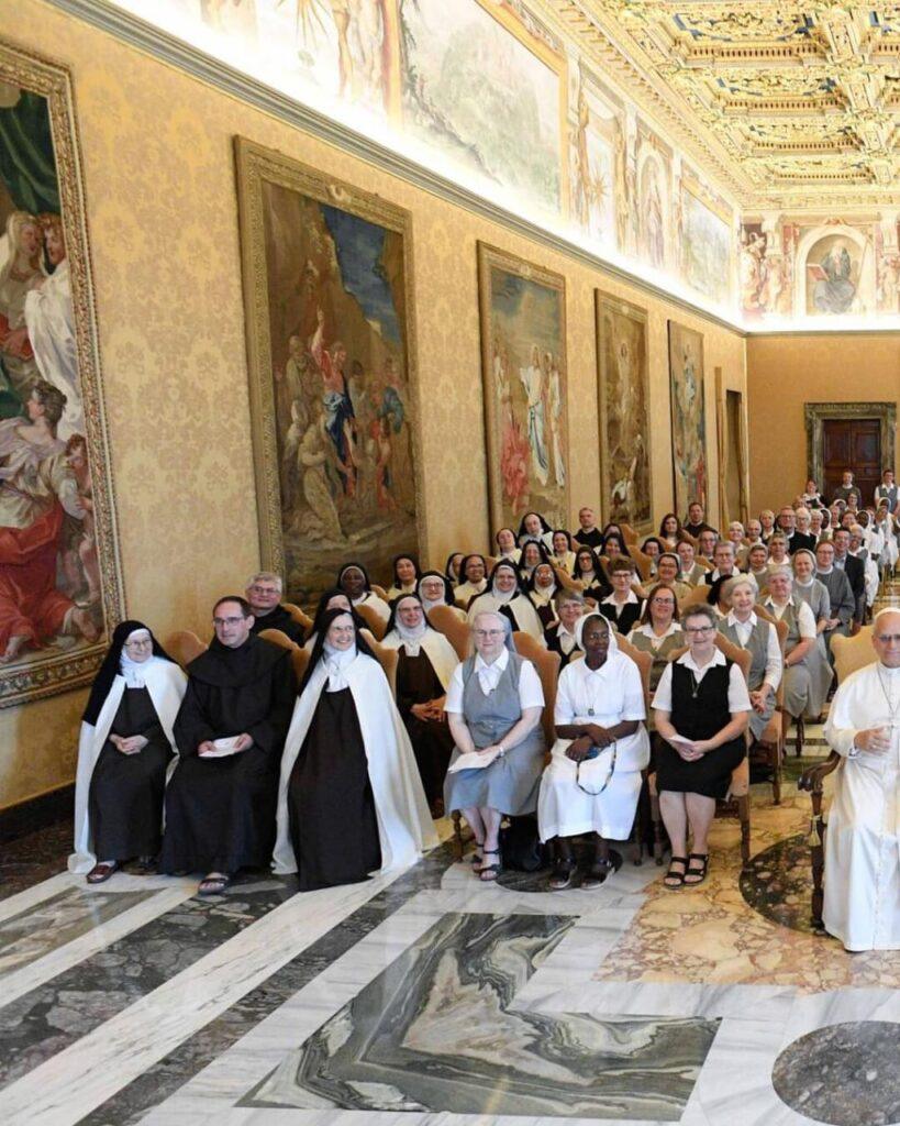De modo especial, Su Santidad dirigió palabras de aliento a las Carmelitas Descalzas de Tierra Santa, reconociendo su silenciosa pero poderosa presencia en lugares marcados por el conflicto. “Su labor es importante”, dijo, “con su presencia vigilante y silenciosa en lugares tristemente desgarrados por el odio y la violencia, con su testimonio de confiado abandono en Dios y con sus constantes súplicas por la paz”.
