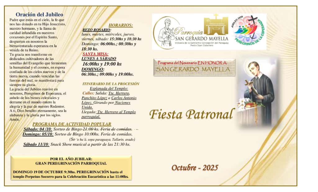 La comunidad parroquial se prepara con gozo para vivir la Novena y Fiesta Patronal en honor a San Gerardo Mayella, bajo el lema “Peregrinos de la Esperanza”, en este Año Jubilar.