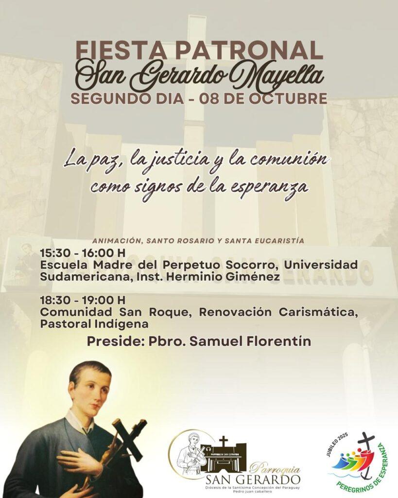 Este martes 8 de octubre continúa la Fiesta Patronal en honor a San Gerardo Mayella, con el desarrollo del segundo día de la novena bajo el tema: “La paz, la justicia y la comunión como signos de la esperanza”.