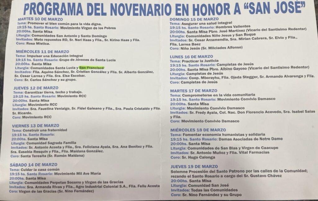 Desde la organización invitan a toda la comunidad a participar de estos días de oración y encuentro, confiando las intenciones de las familias a la intercesión de San José.