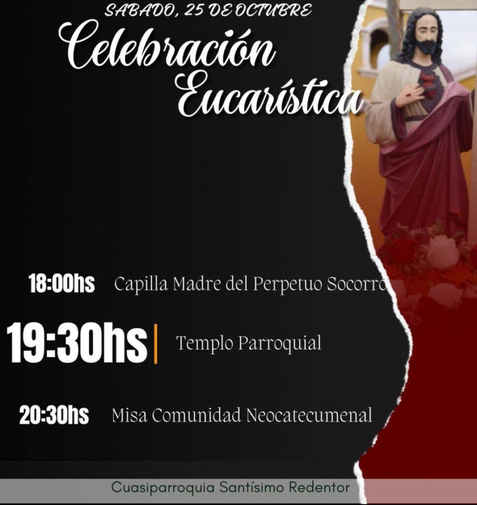 La Cuasiparroquia Santísimo Redentor invita a todos los fieles a vivir un fin de semana de encuentro y oración en torno a la Eucaristía, con diversas celebraciones programadas para el sábado 25 y domingo 26 de octubre.