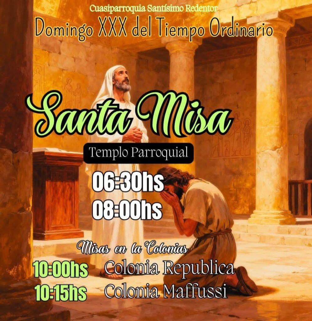 El domingo, día del Señor, la comunidad se congregará nuevamente en el Templo Parroquial para las Misas de las 06:30 y 08:00 horas. Además, se celebrarán Eucaristías en las comunidades rurales: a las 10:00 horas en Colonia República y a las 10:15 horas en Colonia Maffussi.