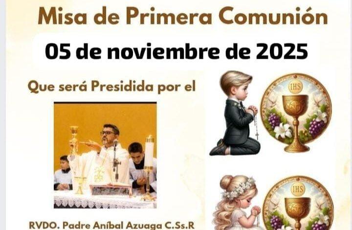 La celebración será presidida por el Rvdo. Padre Aníbal Azuaga, C.Ss.R, quien acompañará a los niños y niñas que, tras un tiempo de preparación catequética, recibirán por primera vez a Jesús Sacramentado en el Pan de Vida.