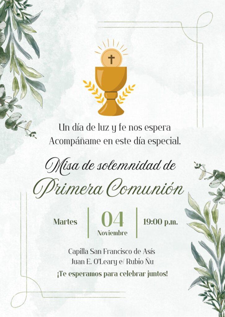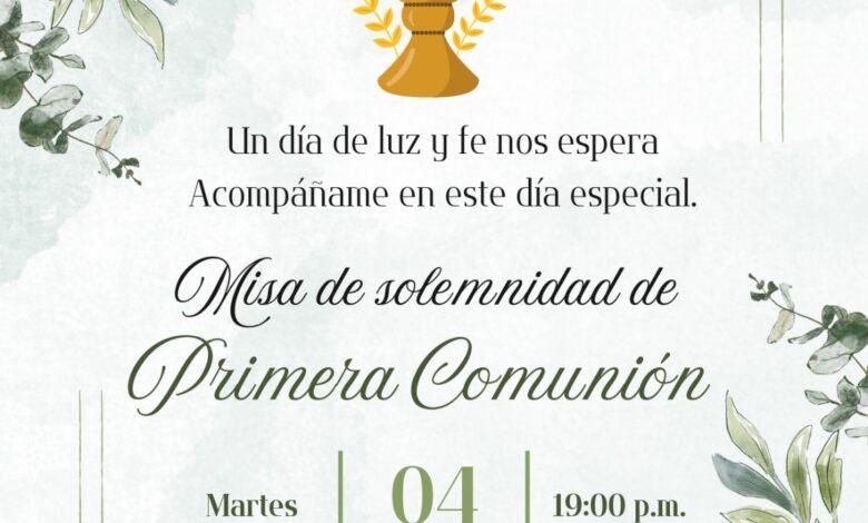 La comunidad celebrará la Misa de solemnidad de Primera Comunión el martes 4 de noviembre, a las 19:00 horas, en un clima de alegría y fe compartida.