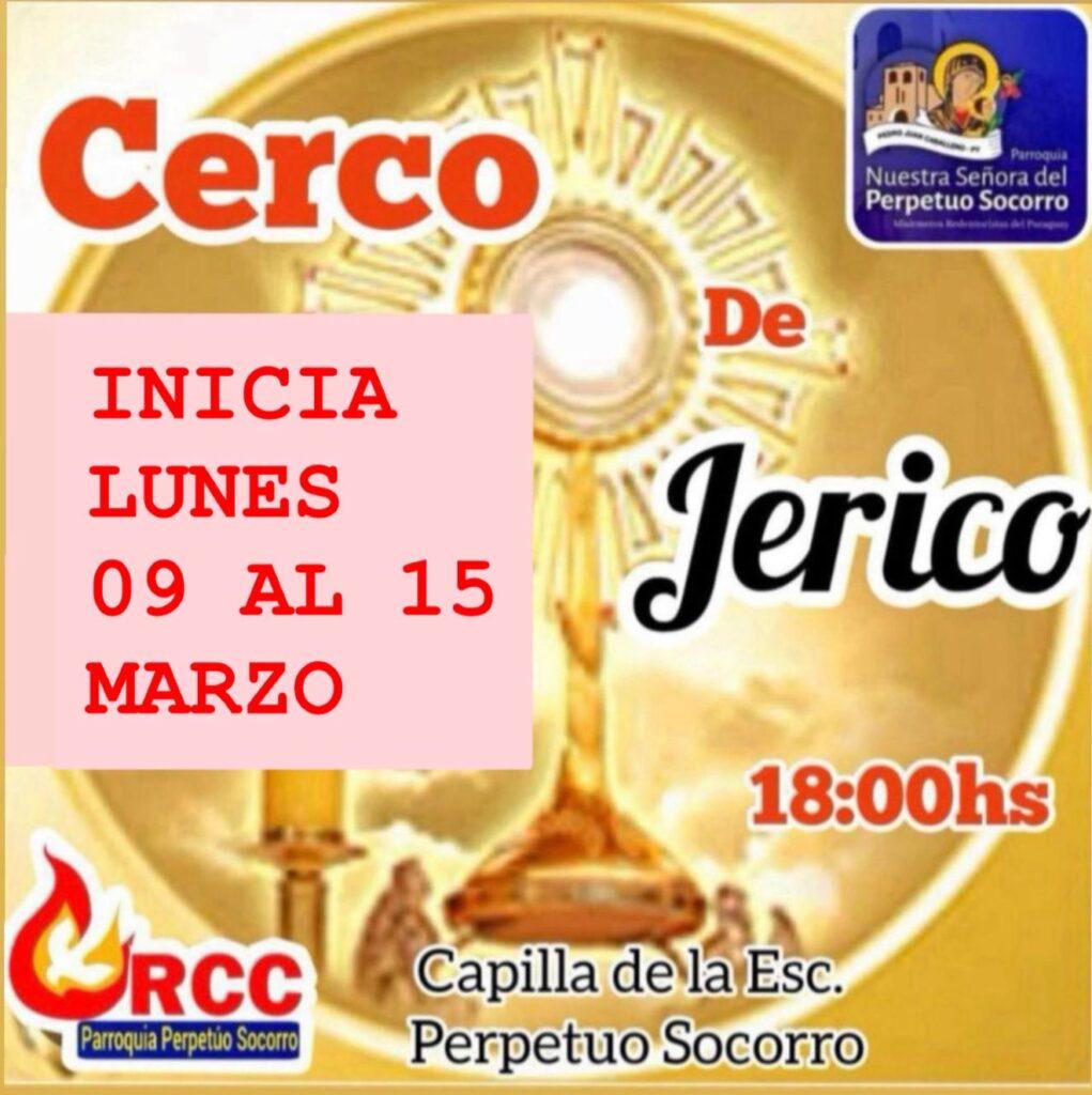 La Parroquia Nuestra Señora del Perpetuo Socorro invita a la comunidad a participar del Cerco de Jericó, un tiempo especial de oración intensa y adoración eucarística, que se realizará del lunes 9 al sábado 15 de febrero, a las 18:00 horas, en la Capilla de la Escuela Perpetuo Socorro.