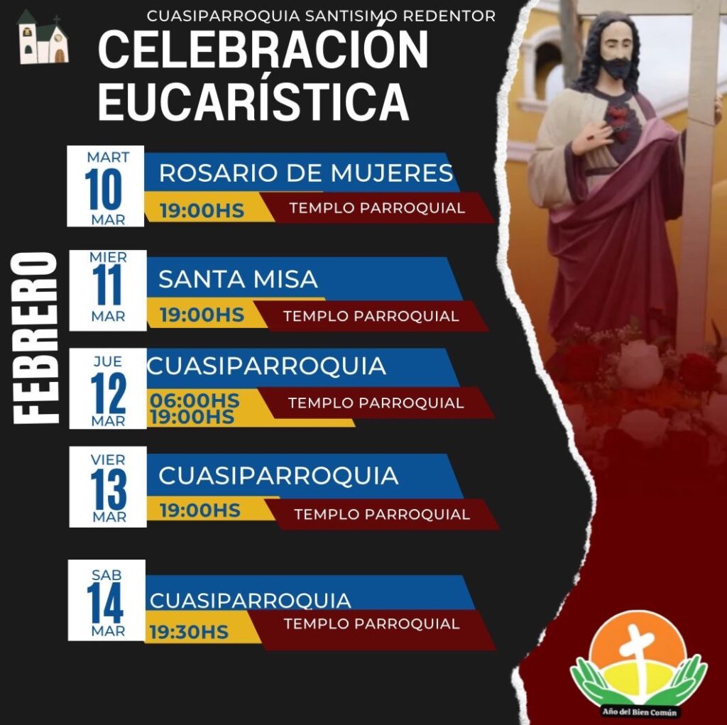 Asimismo, se recuerda que todos los sábados a las 18:30 hs se realiza el Rosario de Hombres del Redentor, un espacio de oración y fraternidad abierto a todos los hombres.