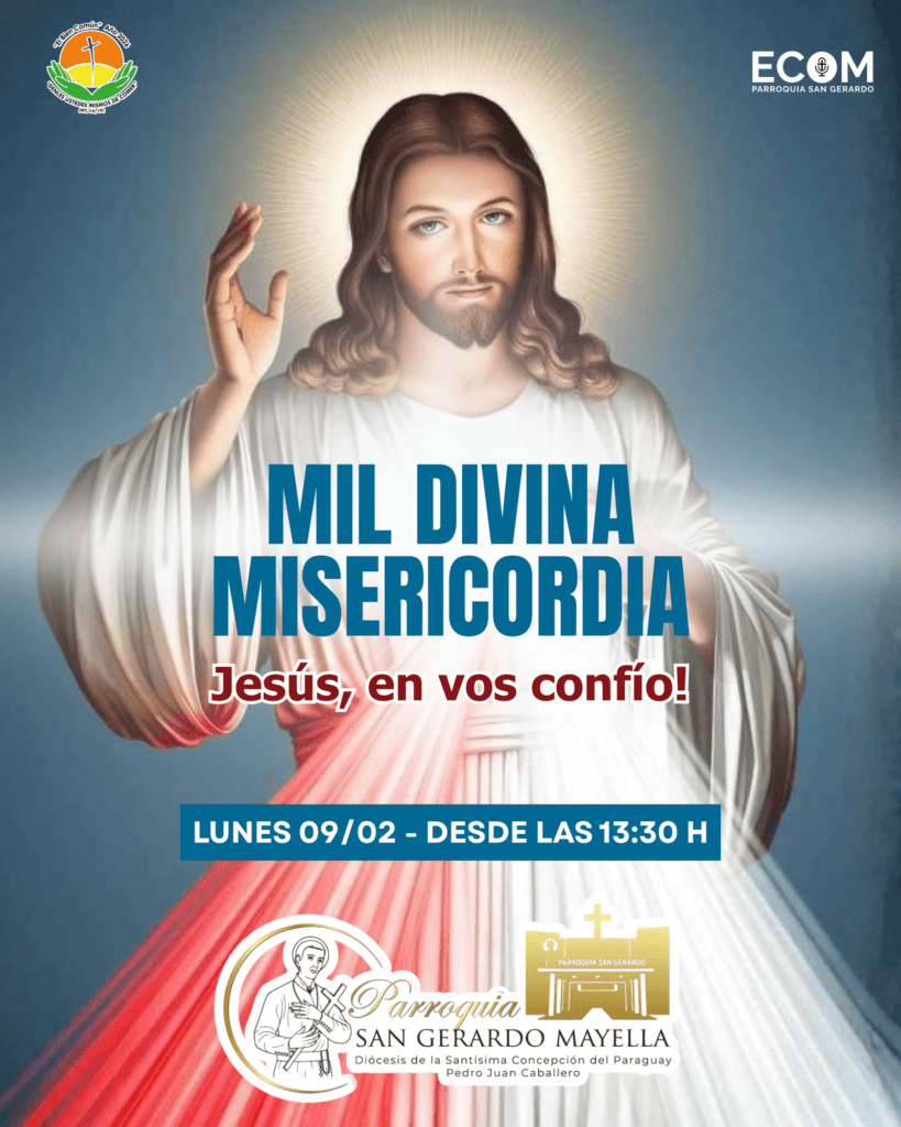 Se convoca a toda la comunidad parroquial a participar del rezo de las Mil Divina Misericordia, un espacio de oración y encuentro con el amor misericordioso de Cristo.