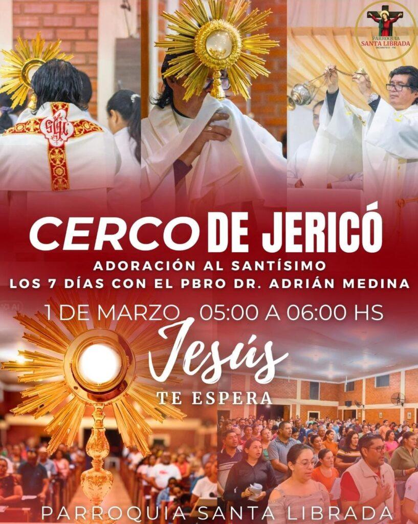 Este encuentro espiritual dará inicio el domingo 1 de marzo, de 05:00 a 06:00 horas, y convoca a los fieles a unirse en oración perseverante ante Jesús Eucaristía, siguiendo el ejemplo bíblico del pueblo de Israel, que confió plenamente en el Señor para ver derribadas las murallas de Jericó.