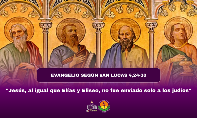 En aquel tiempo, Jesús llegó a Nazaret, entró a la sinagoga y dijo al pueblo: «Yo les aseguro que nadie es profeta en su tierra. Había ciertamente en Israel muchas viudas en los tiempos de Elías, cuando faltó la lluvia durante tres años y medio, y hubo un hambre terrible en todo el país; sin embargo, a ninguna de ellas fue enviado Elías, sino a una viuda que vivía en Sarepta, ciudad de Sidón. Había muchos leprosos en Israel, en tiempos del profeta Eliseo; sin embargo, ninguno de ellos fue curado, sino Naamán, que era de Siria».