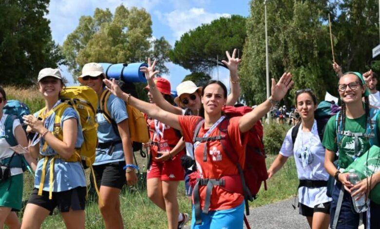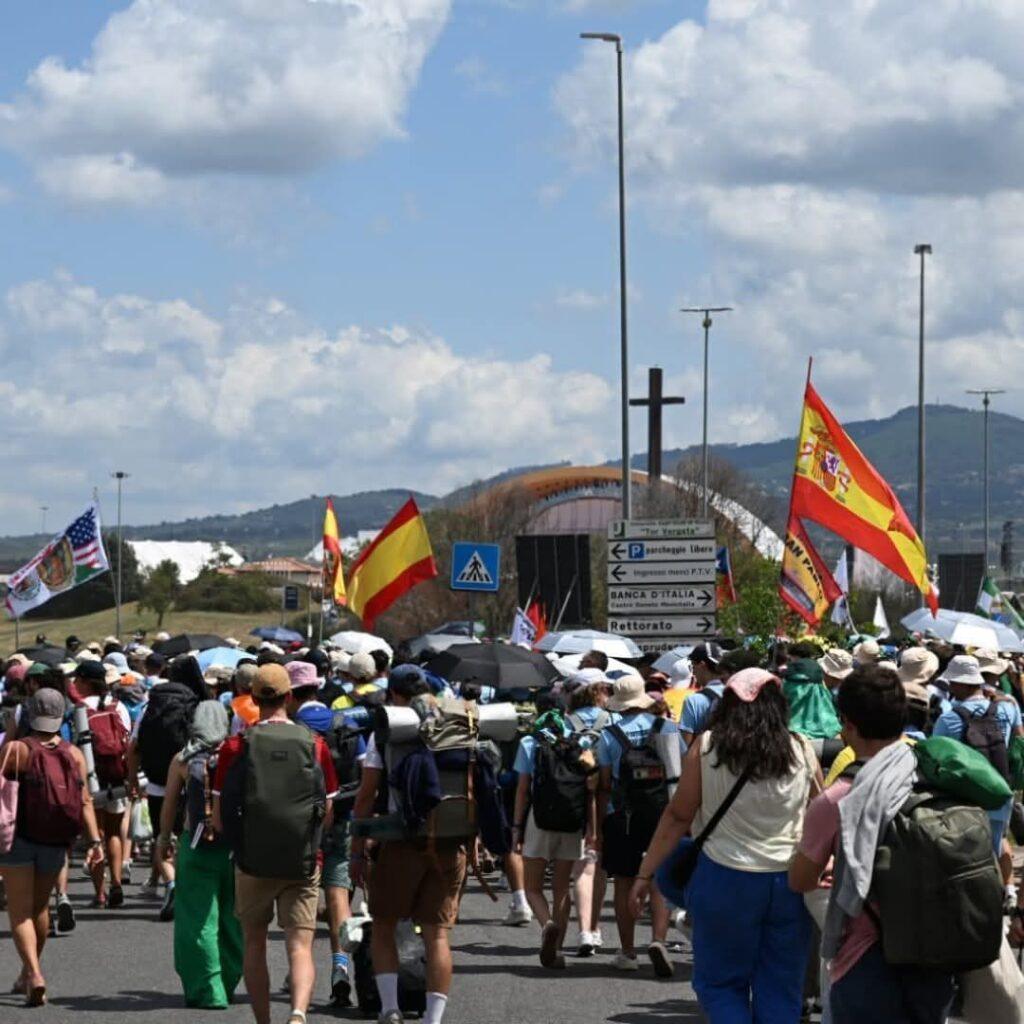 Peregrinos en marcha hacia Tor Vergata, a las afueras de Roma, donde esta noche vivirán una intensa vigilia de oración en el marco del Jubileo de la Juventud.