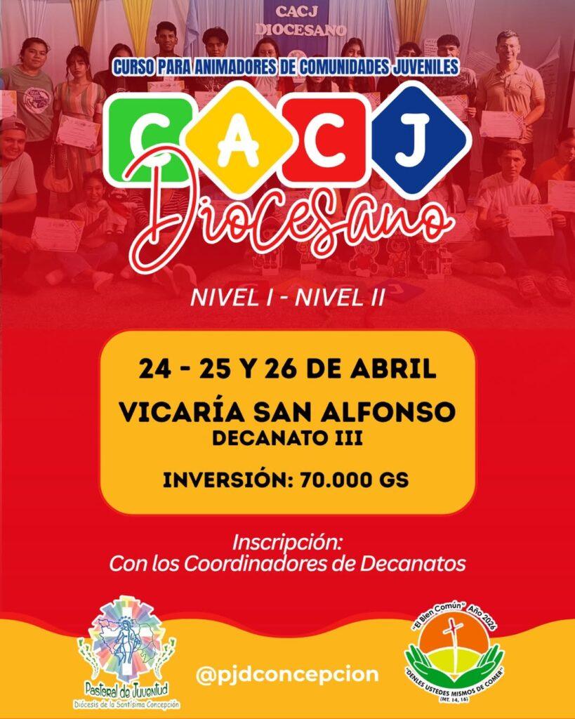 La pastoral juvenil diocesana invita a participar del Curso para Animadores de Comunidades Juveniles (CACJ), una instancia formativa pensada para acompañar y preparar a jóvenes comprometidos con la vida eclesial. El encuentro se desarrollará los días 24, 25 y 26 de abril en la Vicaría San Alfonso – Decanato III, reuniendo a participantes de distintas comunidades.