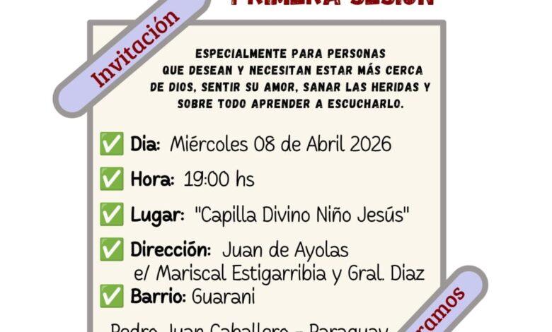 Los Talleres de Oración y Vida han convocado a la comunidad de Pedro Juan Caballero a participar en una nueva experiencia formativa centrada en la oración y el crecimiento personal. La primera sesión se realizará el miércoles 8 de abril de 2026, a las 19:00 horas, en la Capilla Divino Niño Jesús, de la Vicaria San Alfonso, ubicada en el barrio Guaraní.