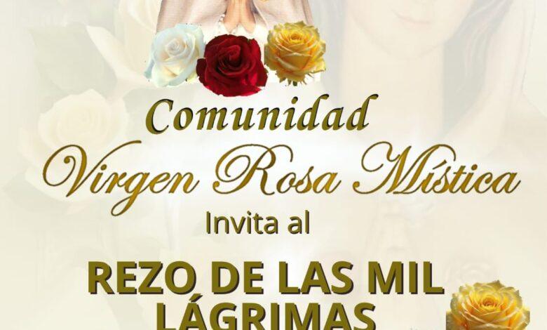 La Comunidad Virgen Rosa Mística, perteneciente a la Parroquia Santa Librada, invita a los fieles a participar del rezo de las Mil Lágrimas, que se llevará a cabo hoy lunes 13 de abril de 2026 a las 14:00 horas.