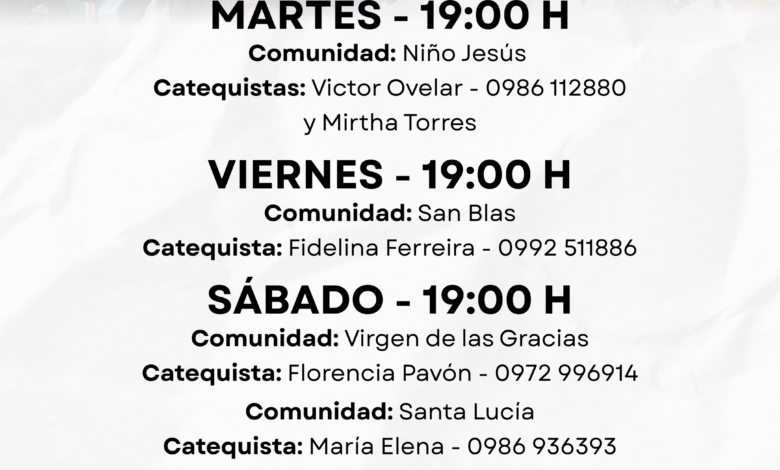 Catequistas: Víctor Ovelar (0986 112880) y Mirtha Torres