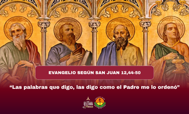 Jesús exclamó: “El que cree en mí, en realidad no cree en mí, sino en aquel que me envió. Y el que me ve, ve al que me envió. Yo soy la luz, y he venido al mundo para que todo el que crea en mí no permanezca en las tinieblas. Al que escucha mis palabras y no las cumple, yo no lo juzgo, porque no vine a juzgar al mundo, sino a salvar al mundo. El que me rechaza y no recibe mis palabras, ya tiene quien lo juzgue: La palabra que yo he anunciado es la que lo juzgará en el último día. Porque yo no hablé por mí mismo: El Padre que me ha enviado me ordenó lo que debía decir y anunciar; y yo sé que su mandato es Vida eterna. Las palabras que digo, las digo como el Padre me lo ordenó”.