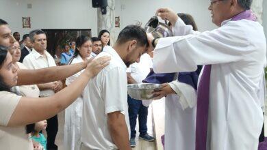 Tres adultos recibieron el sacramento del Bautismo en la parroquia Virgen de Fátima.