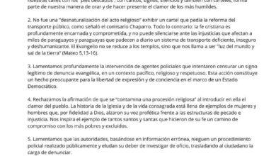 La Conferencia de Religiosos y Religiosas del Paraguay (CONFERPAR) se pronuncia tras la intervención policial en peregrinación del 16 de julio de 2025.