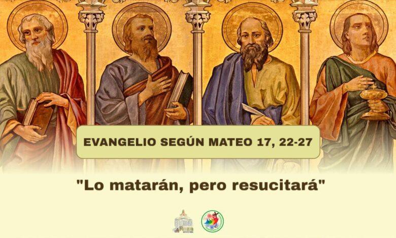 En aquel tiempo, mientras Jesús y los discípulos recorrían juntos la Galilea, les dijo Jesús: Al Hijo del Hombre lo van a entregar en manos de los hombres, lo matarán, pero resucitará al tercer día.